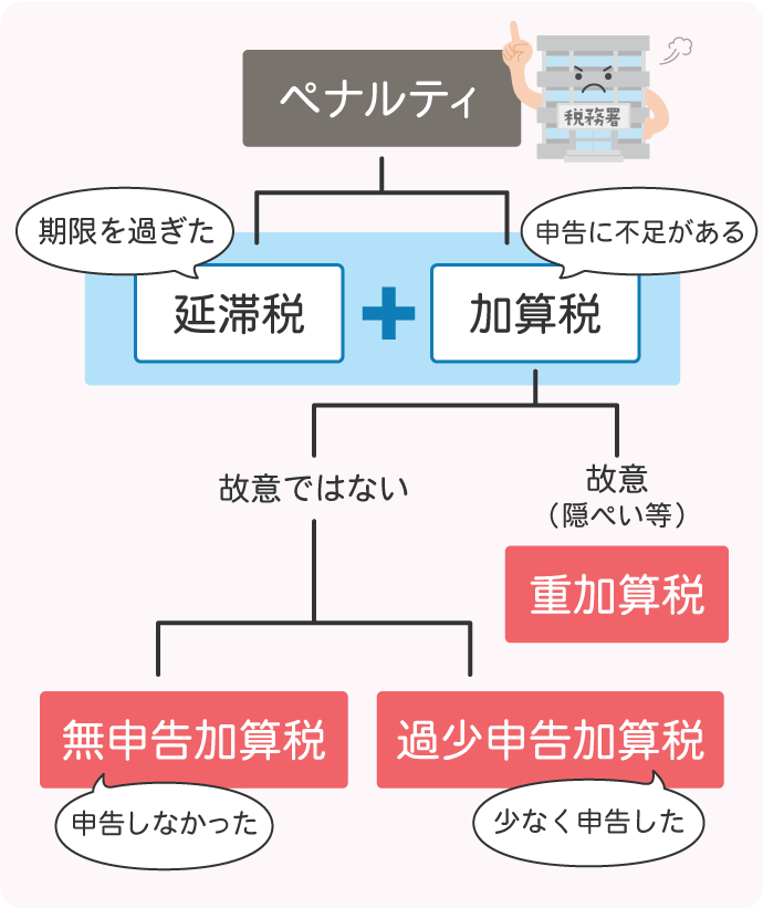 最終的なペナルティは、延滞税と加算税の合計になります。